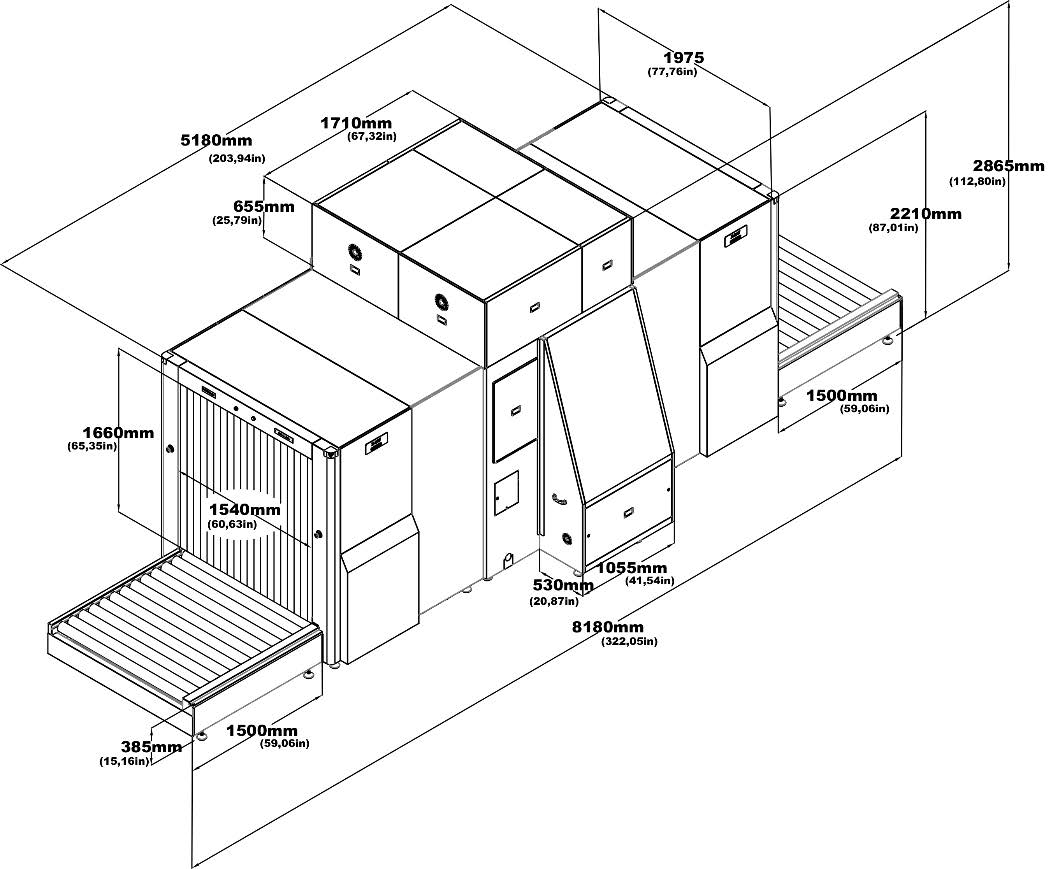 With its 320kV generator XRC 150-165DV x-ray baggage scanner provides superior performance and facilitates the operators use thanks to the various image processing functions, hazard alarm, advanced computer technology and the best in class software. It provides exceptional ease in detecting threats such as cutting tools, explosives narcotics and minimizes the error rate. Thanks to its multi-diode structure and quality in imaging of scanned objects /materials), image is colored based on density and shows organic, inorganic and mixed materials in different tones.